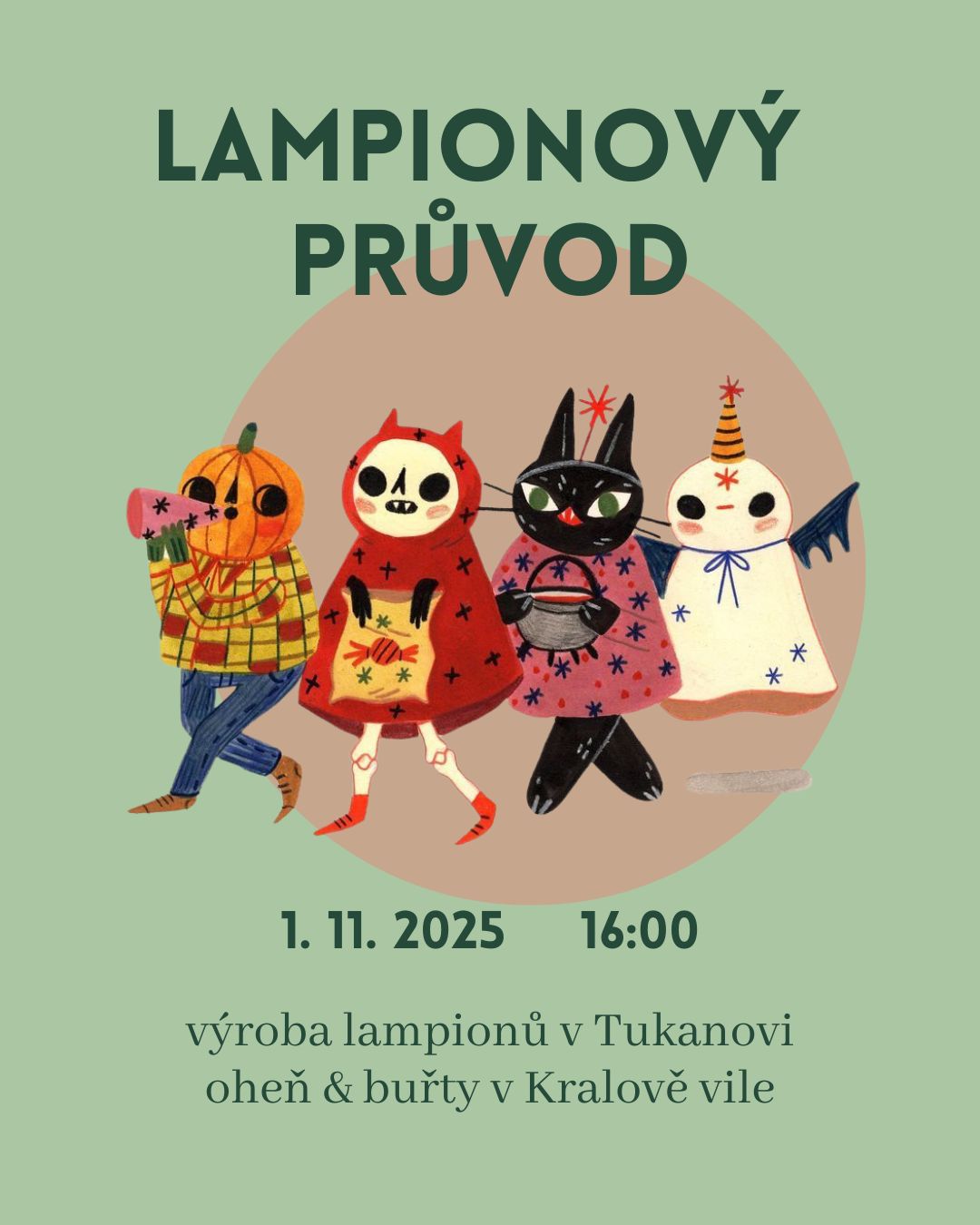 Od 16:00 možnost výroby lampiónků v Tukanovi, poté (cca 17:30) odchod na zahradu Kralovy vily, kde bude oheň, čaj a špekáčky (ty si přineste vlastní, ale nějaké na místě taky budou).